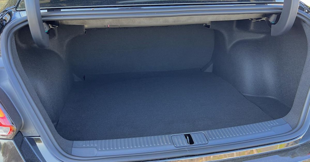 There’s a small intrusion from the transmission tunnel (because this is built on a floor pan shared with models that have all-wheel drive), but there is going to be enough room for three smaller occupants who don’t mind each other’s company.