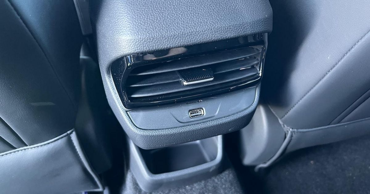 In the back, there’s another quirk for the ventilation system – there’s just the one directional air vent. That’s great if you have one kid, but not ideal if you have two. The same goes for the fact that there’s only one USB port in the back.