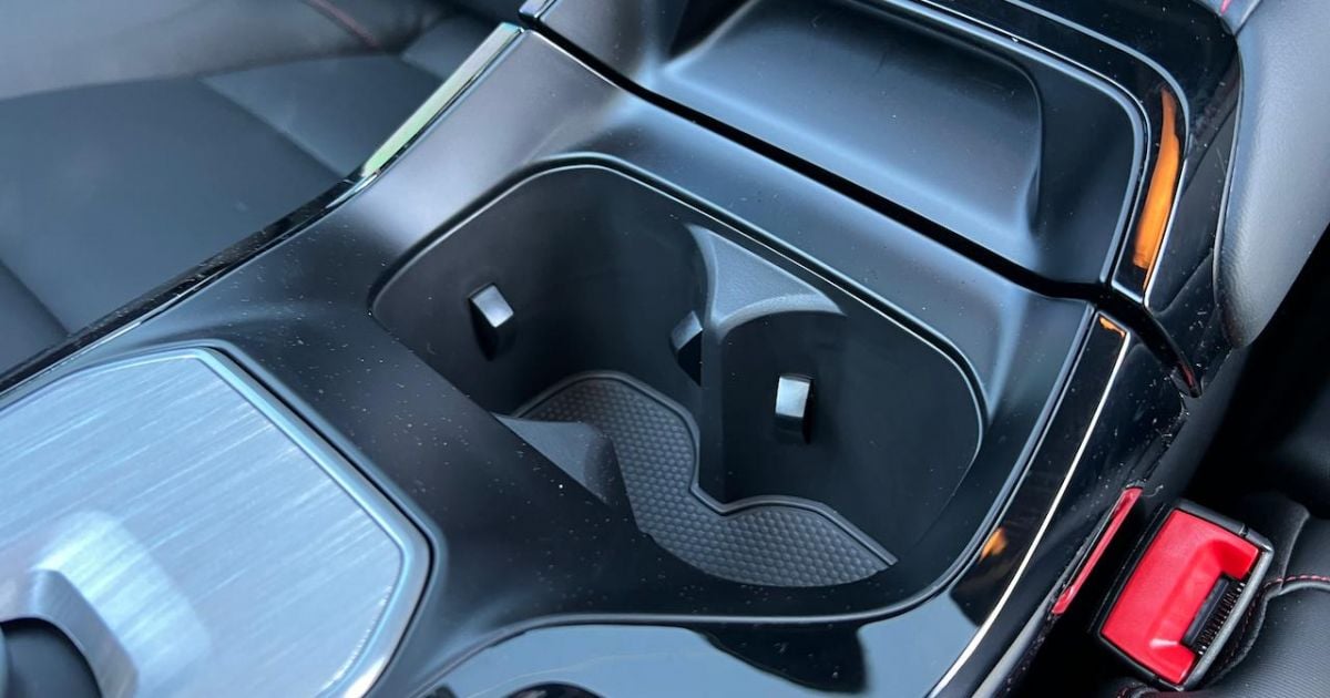 Storage in the front is pretty good, with a pair of usable (not Euro-spec) cupholders between the front seats, a storage tray in front of the shifter (sadly not a wireless charger), and a decent-sized centre console bin, glovebox and bottle holder/pockets in the doors.